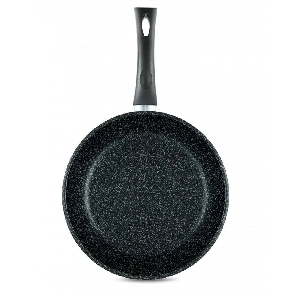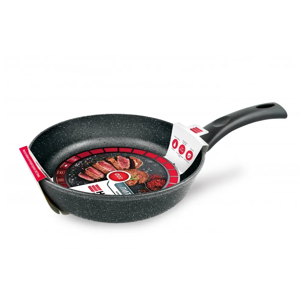 Сковорода для ежедневного использования с антипригарным покрытием в модном цвете - покрытие с эффектом натурального камня «чёрный гранит». Практичный цвет помогает долго сохранять прекрасный внешним вид сковороды.