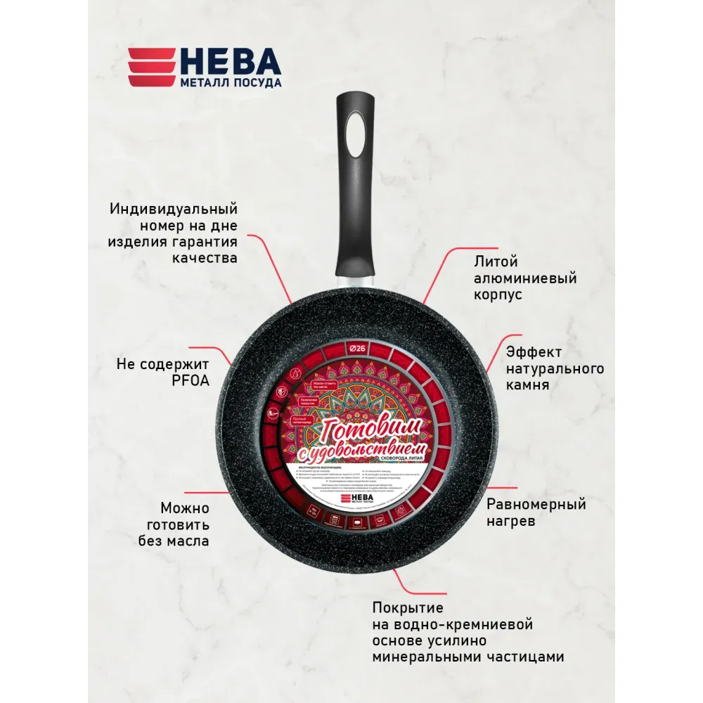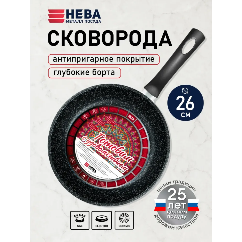 Удобство пользования: Лёгкий вес, эргономичная ручка и продуманная форма сковороды «Готовим с удовольствием» обеспечат комфорт и экономию пространства даже на самой маленькой кухне!