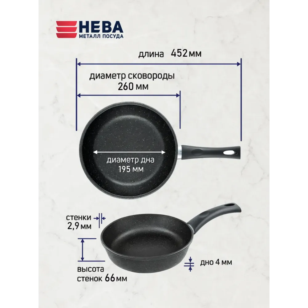 Материал: Литой пищевой алюминий, антипригарное покрытие на водной основе, ручка — бакелит (не нагревается)