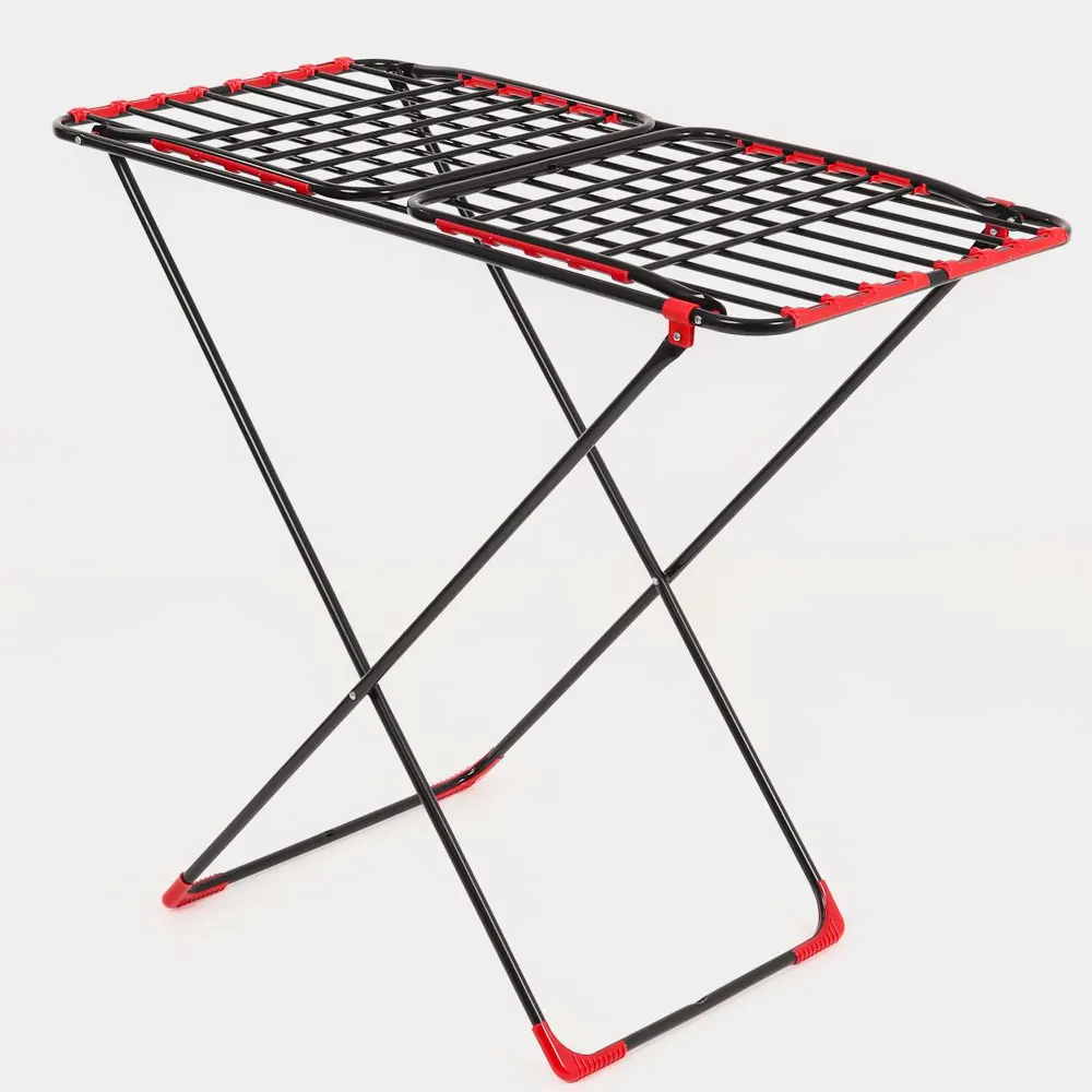 Rasflashadigan yon qanotli metall quritgich kiyimlarni tartibli osish va tezroq quritish imkonini beradi. Mustahkam karkas va ishonchli biriktirish tugunlari barqaror turishni ta’minlaydi. Ishlatib bo‘lgach, buklanadigan kir quritgich tez yig‘iladi va juda kam joy egallaydi.